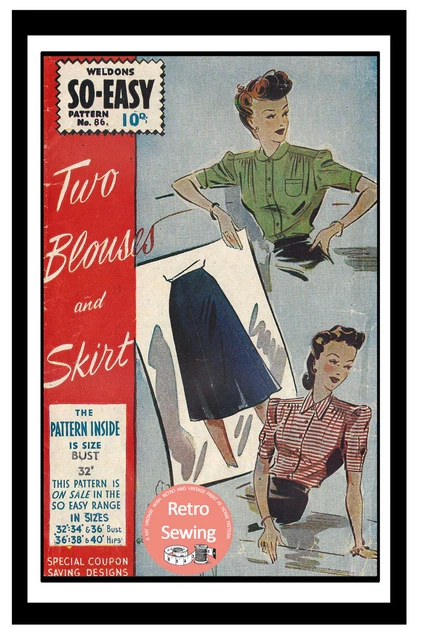 Gonna Intelligente Anni 40 E Due Camicette Motivo Cucito Busto 36 Eur 25 28 Picclick It